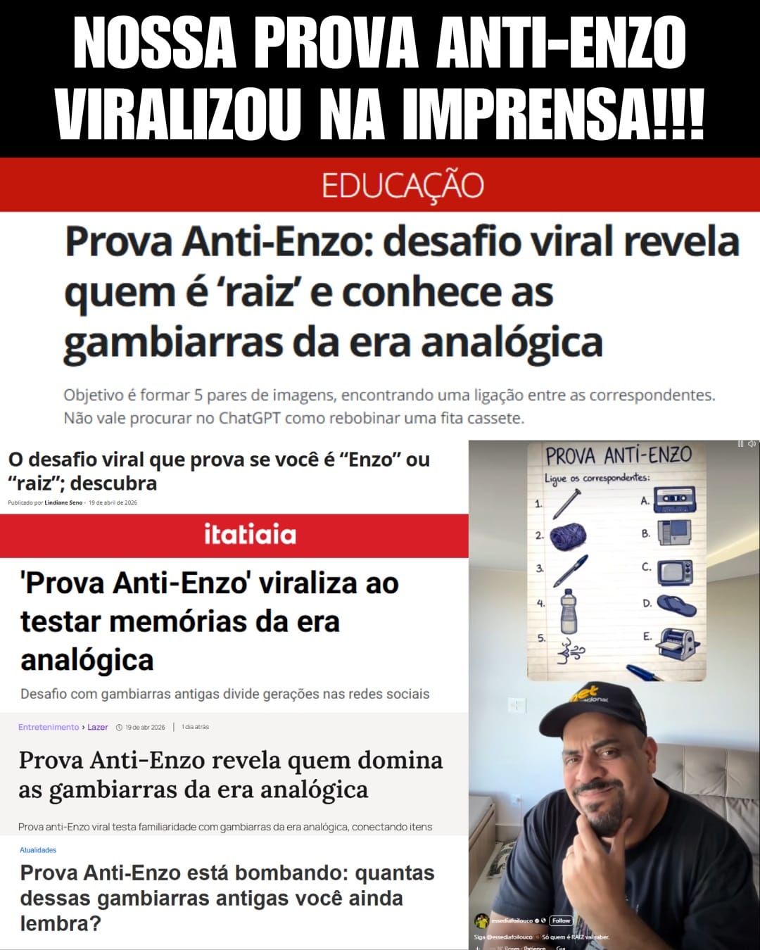 Se você navegou pelo Facebook, Instagram ou TikTok nos últimos dias, certamente cruzou com a “Prova Anti-Enzo”. O desafio, que testa os conhecimentos de objetos e rotinas que só quem viveu as décadas de 80 e 90 entende, tornou-se um dos maiores fenômenos virais de 2026 até agora.